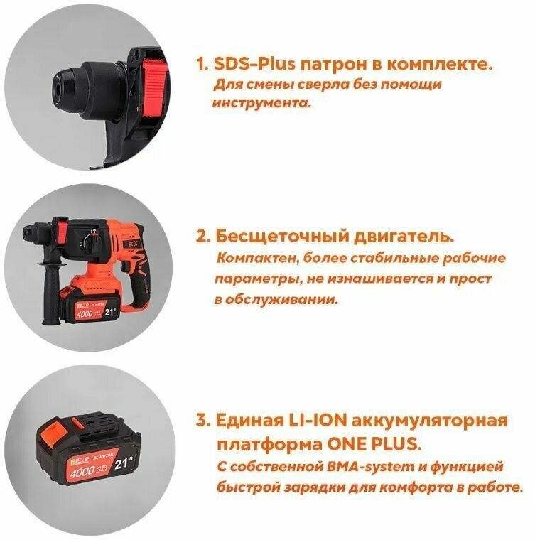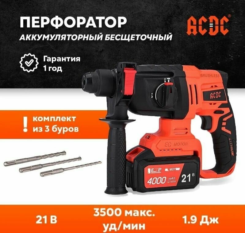 Перфоратор аккумуляторный бесщеточный ACDC BBH-21BL 1-PLUS 21В (2 АКБ LI-ION, 4.0АЧ, в кейсе) информация: