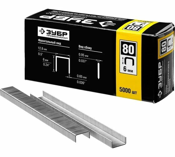 10 цен на Особотвердые тонкие скобы ЗУБР Профессионал широкие, тип 80, 6 мм, 5000 шт. 31880-06