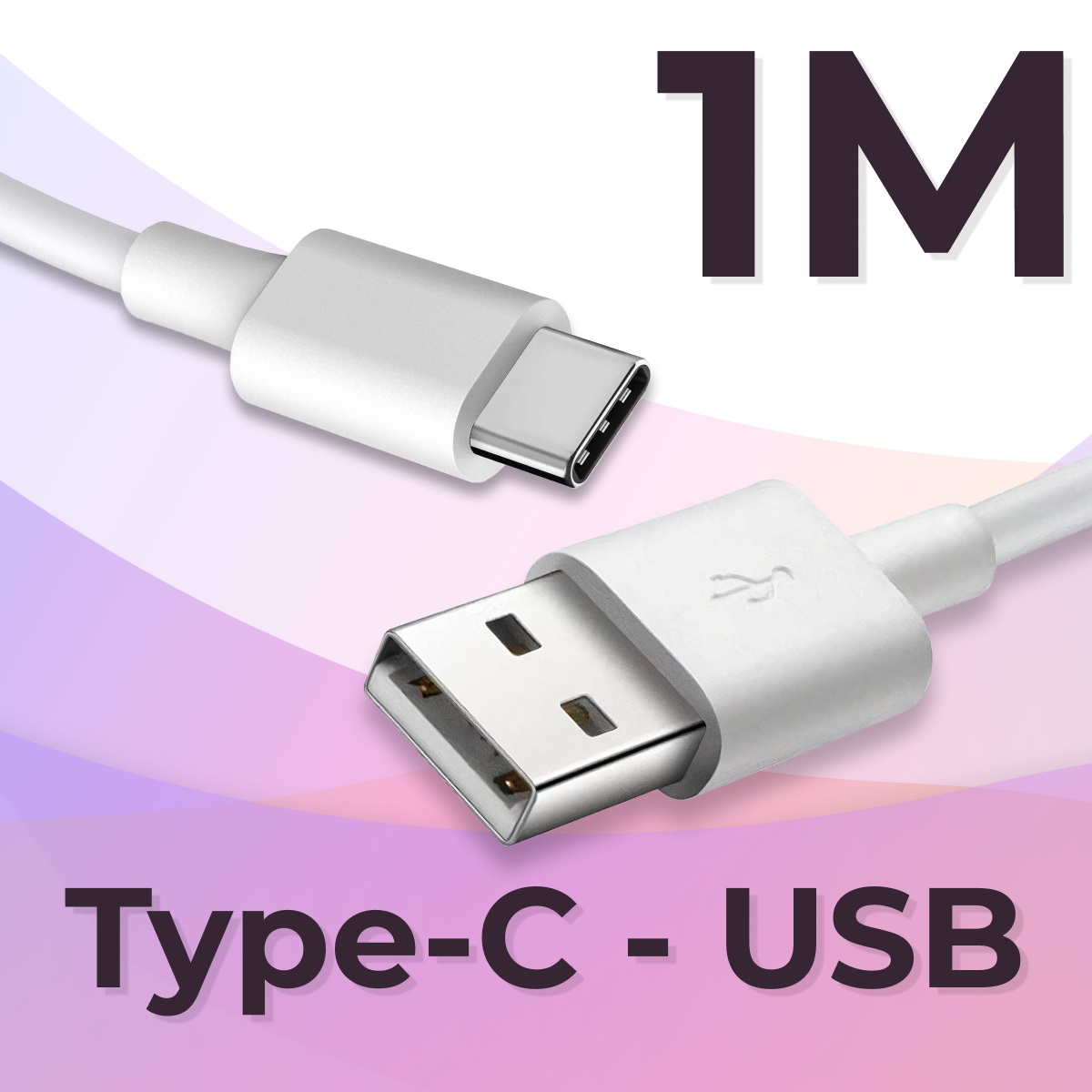 Кабель Type-C / USB для зарядки мобильных устройств / Длина 1 метр / Провод для телефона, планшета, наушников / Шнур с разъемом ЮСБ Тайп Си / Белый