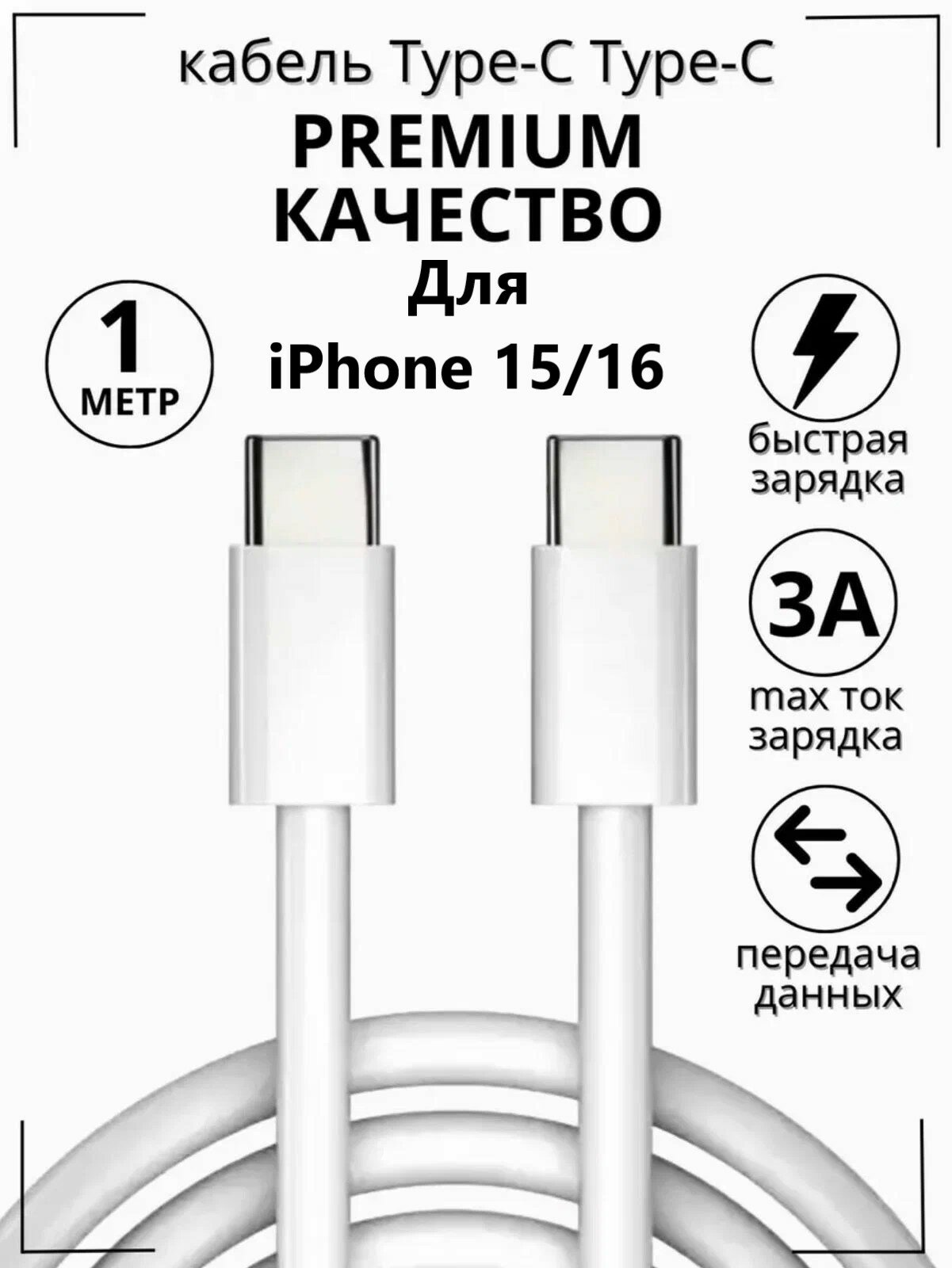 10 цен на Кабель Isa Type C - Type C, Для iPhone 15/16 1 м, 2 А, белый