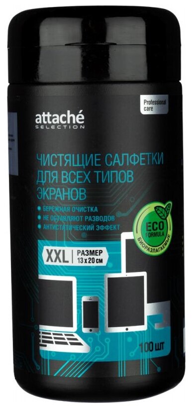 Салфетки Attache Selection Professional д/экранов, туба, 100 шт, XXL, 13х20 информация: