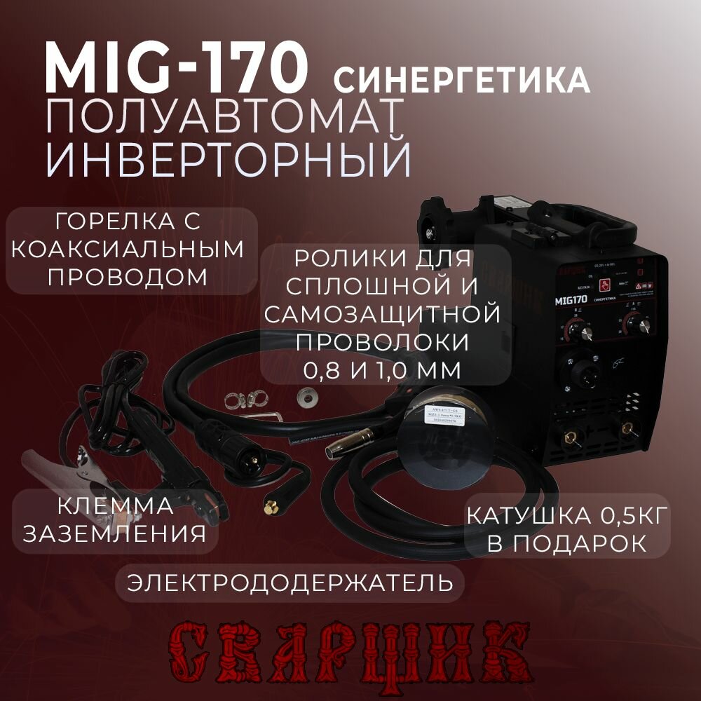 Сварочный полуавтомат сварщик MIG-170 (Маска и проволока в подарок) информация:
