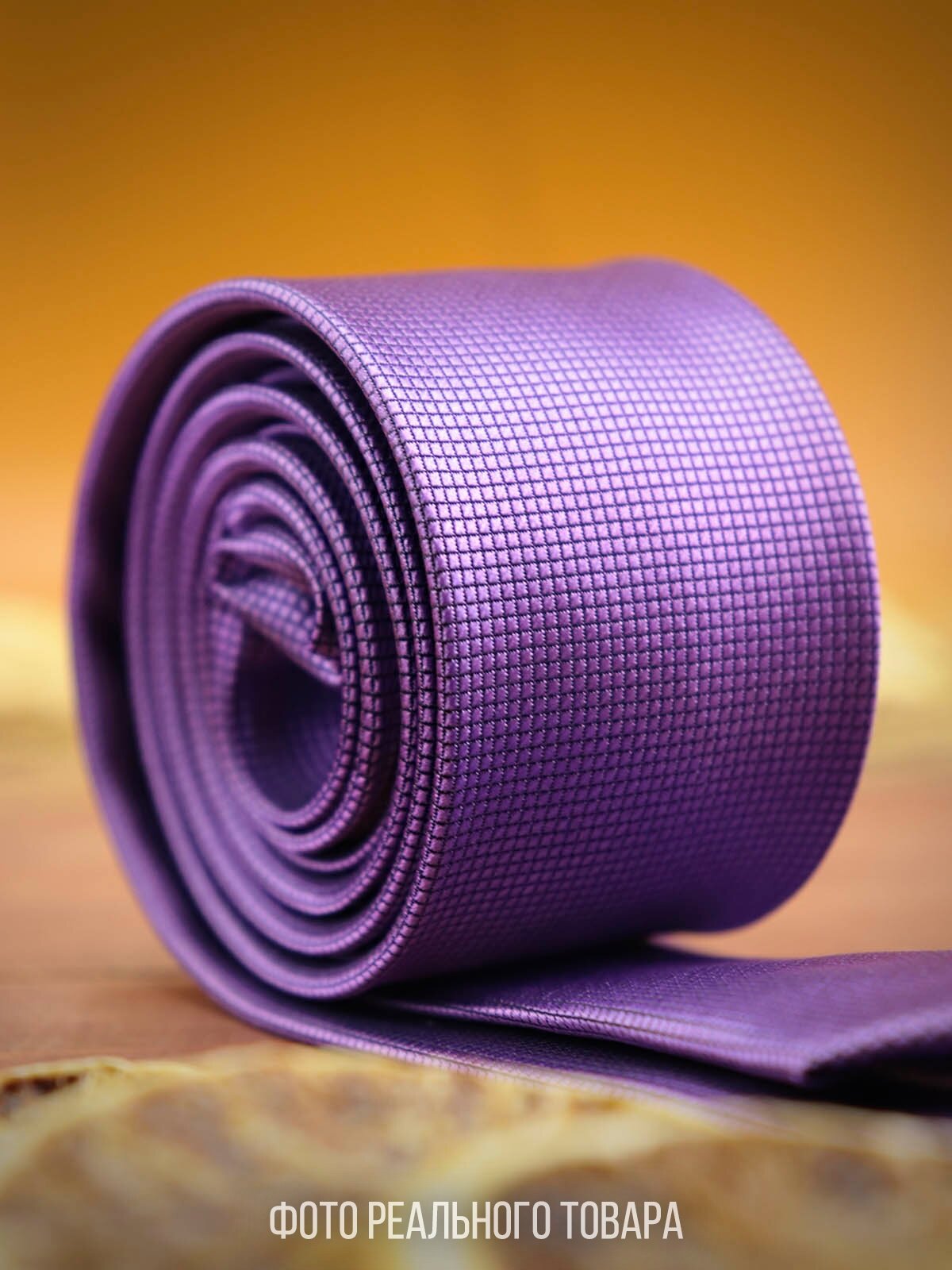 | Подробная комплектация | Галстук мужской узкий сиреневый однотонный с клеточной текстурой - 1 шт. |