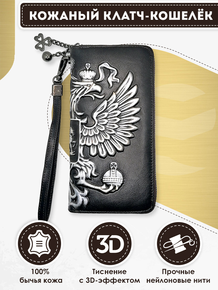 Кошелек женский натуральная кожа, тип клатч - портмоне, 100% кожаный с тиснением, бренд Dzett