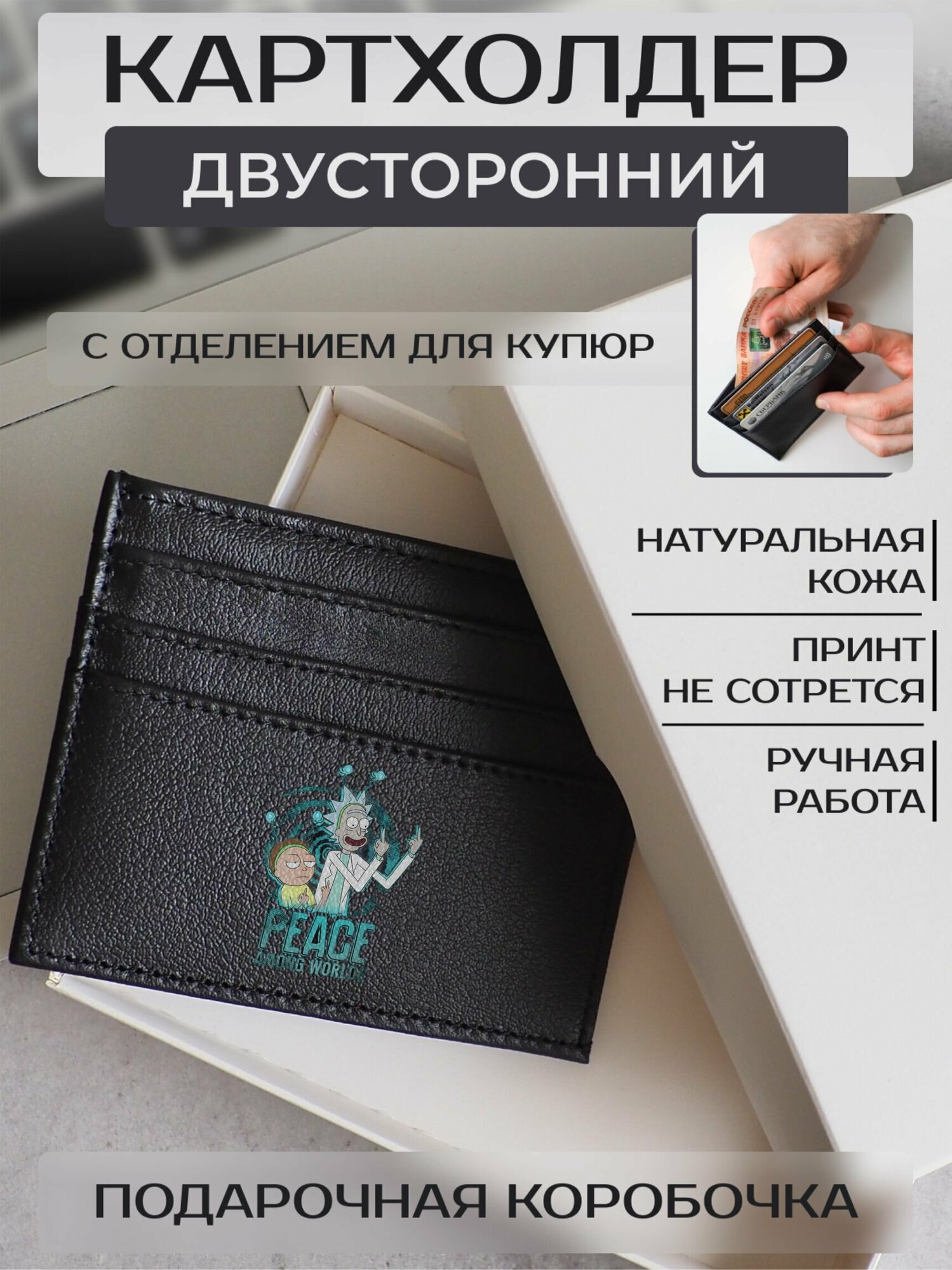 Кредитница / Футляр для карт / Картхолдер Russian.Handmade из натруальной кожи Рик и Морти №1 1 399 ₽
