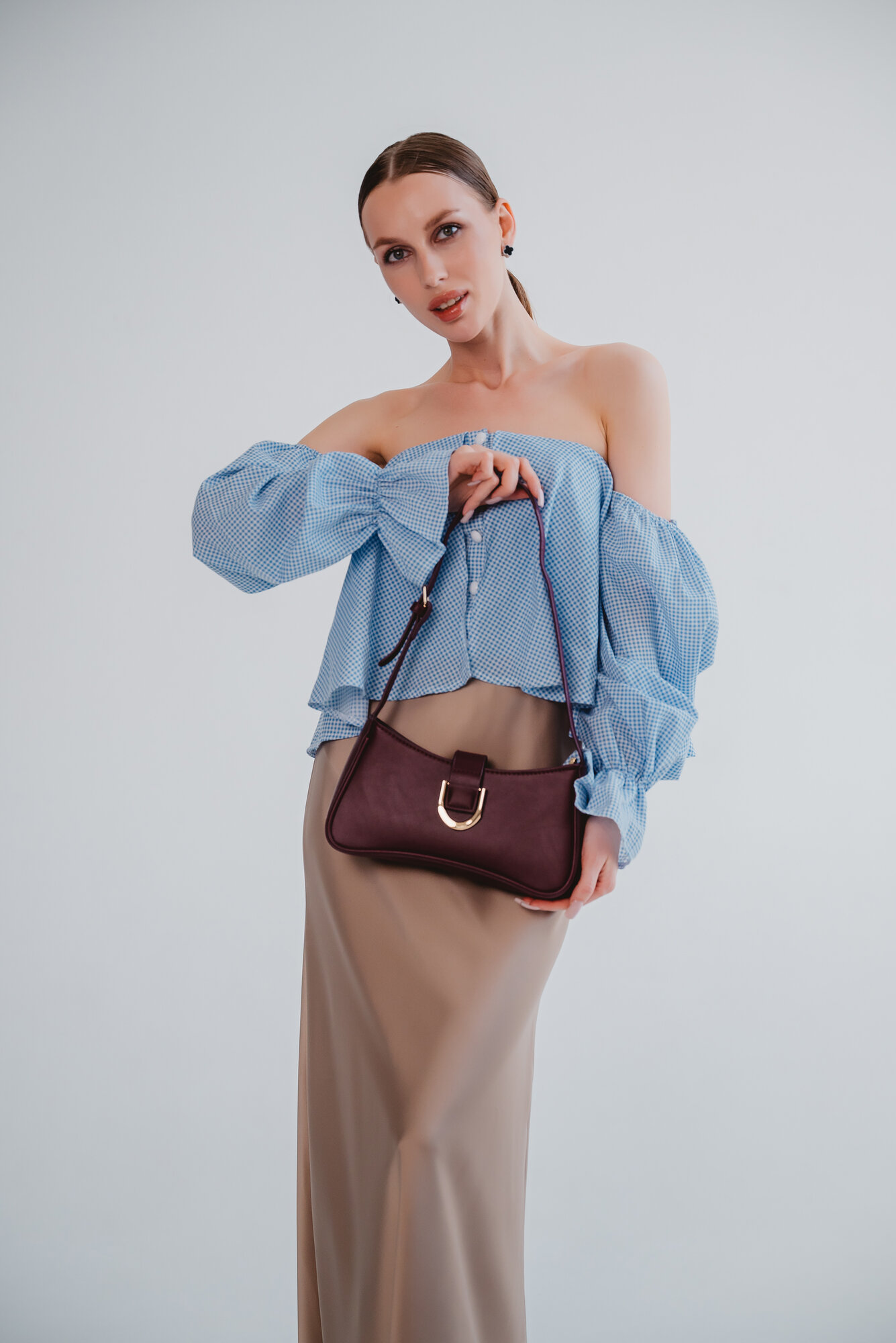 10 цен на Сумка багет Evangelina May, фактура гладкая, бордовый