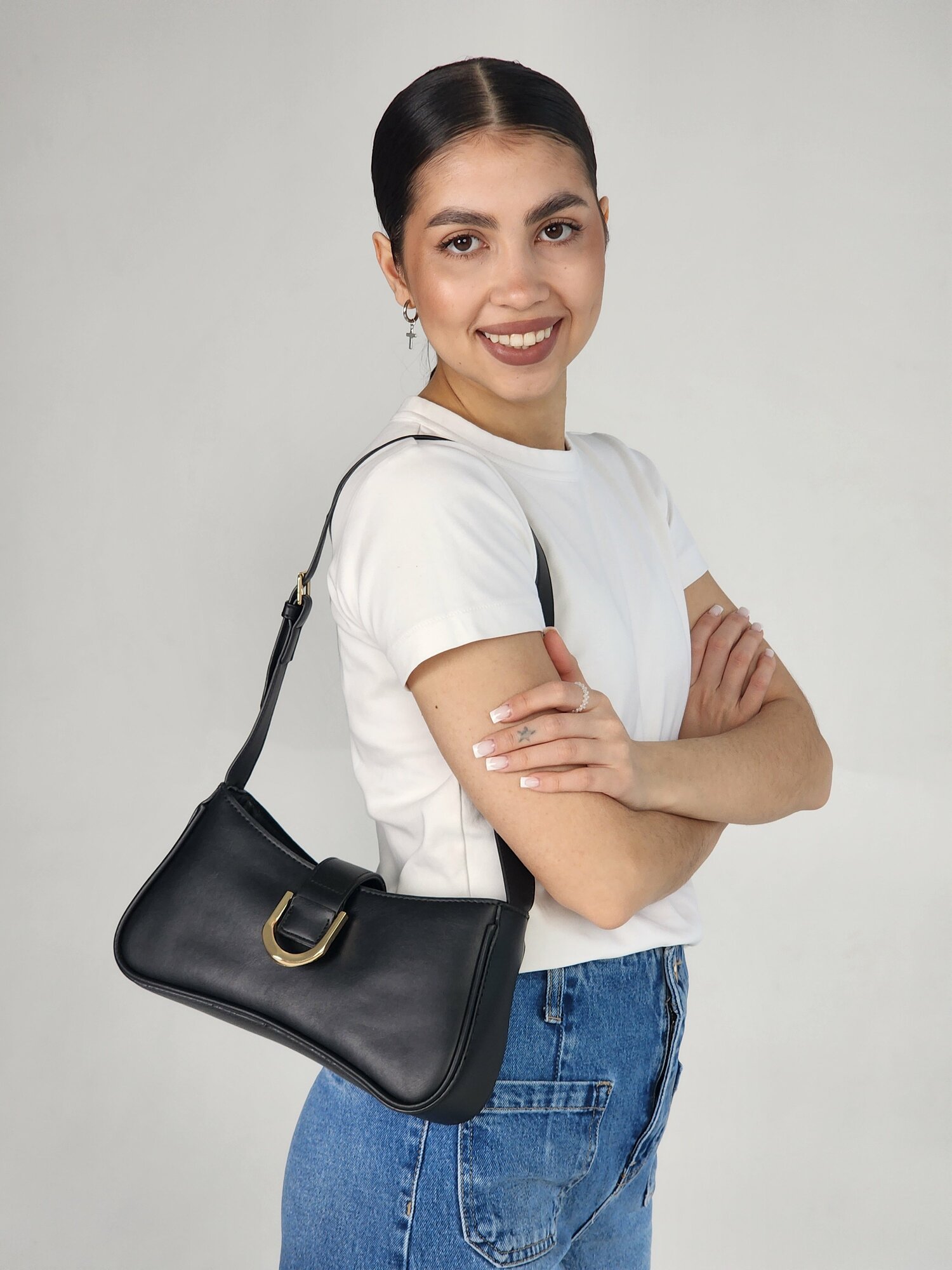 Сумка багет Evangelina May, фактура гладкая, черный информация: