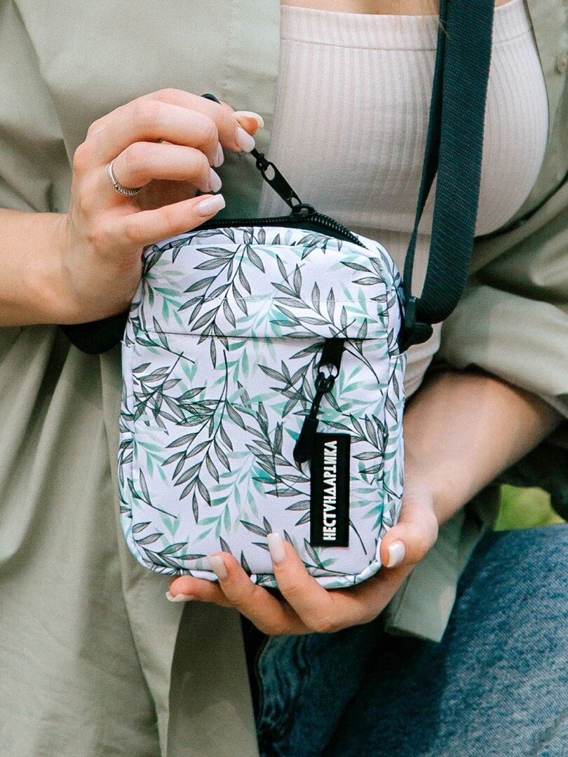 Мини-сумка мессенджер женская, мужская через плечо для телефона с принтом Листья 1 100 ₽