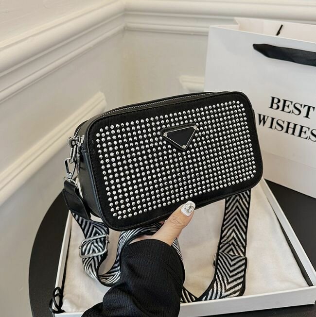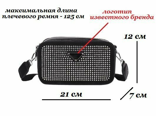 Сумка женская BOTTONCINI через плечо, мини мессенджер со стразами, черный, р-р 21х7х12 см 1 498 ₽