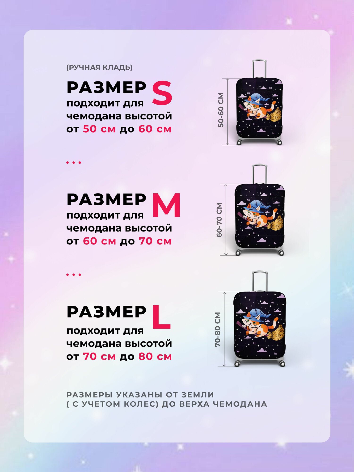 Чехол на чемодан размер M (60-70 см) ночь, котик, iTCOVERS - прочная защита багажа 1 600 ₽