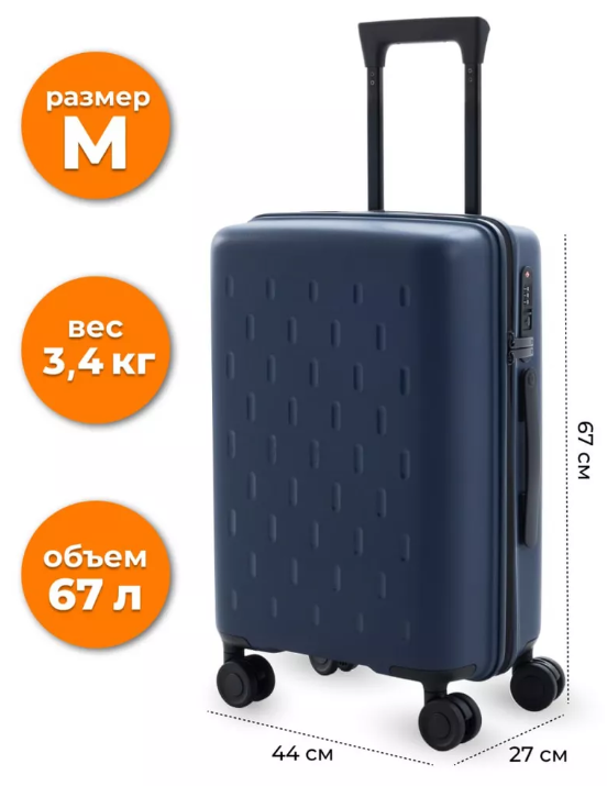 Чемодан Xiaomi, 67 л, размер M, синий информация: