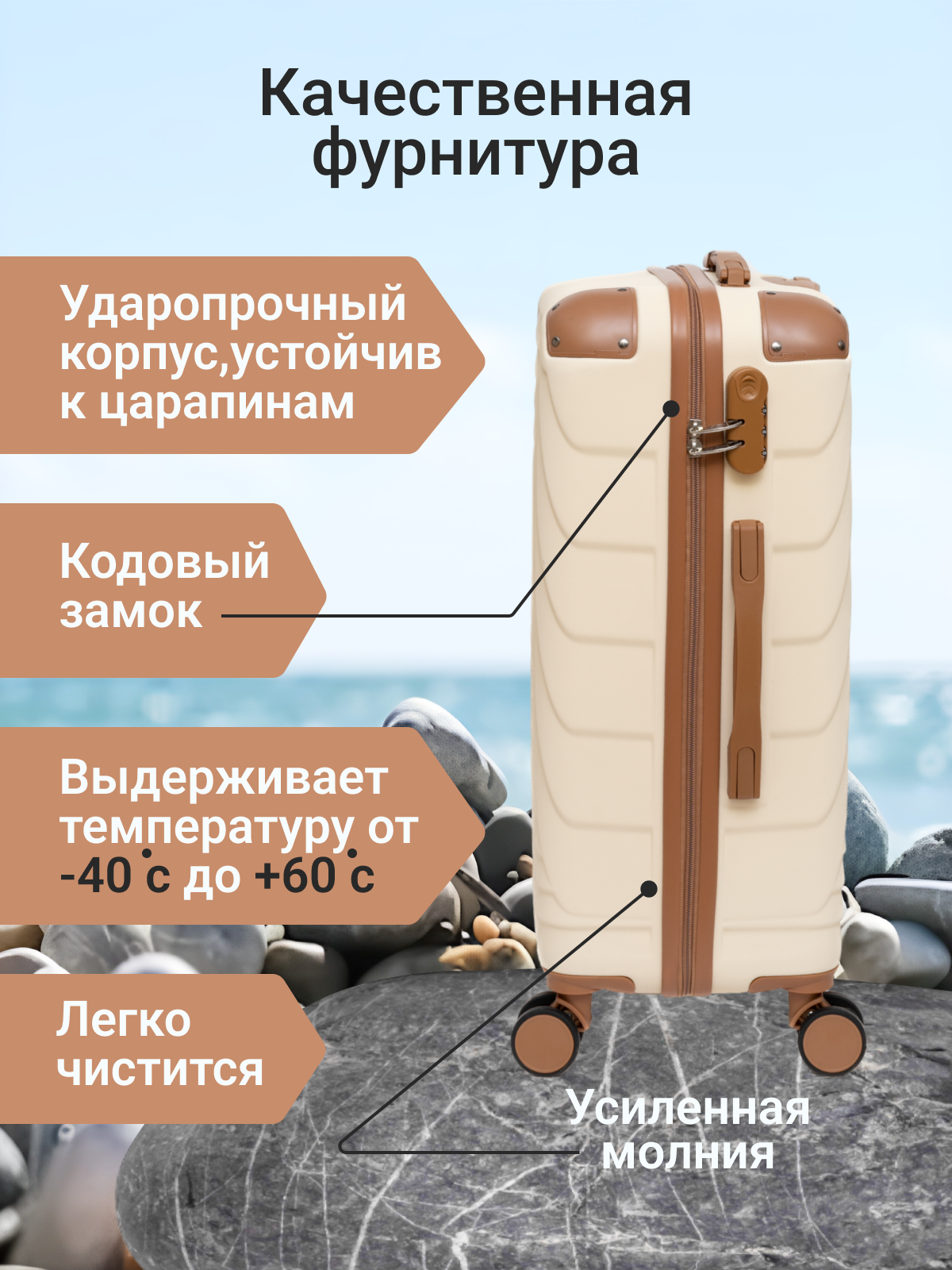 Чемодан на колесах BELLETTI 1030-74см (кремовый/коричневый) L, 84 л 8 200 ₽