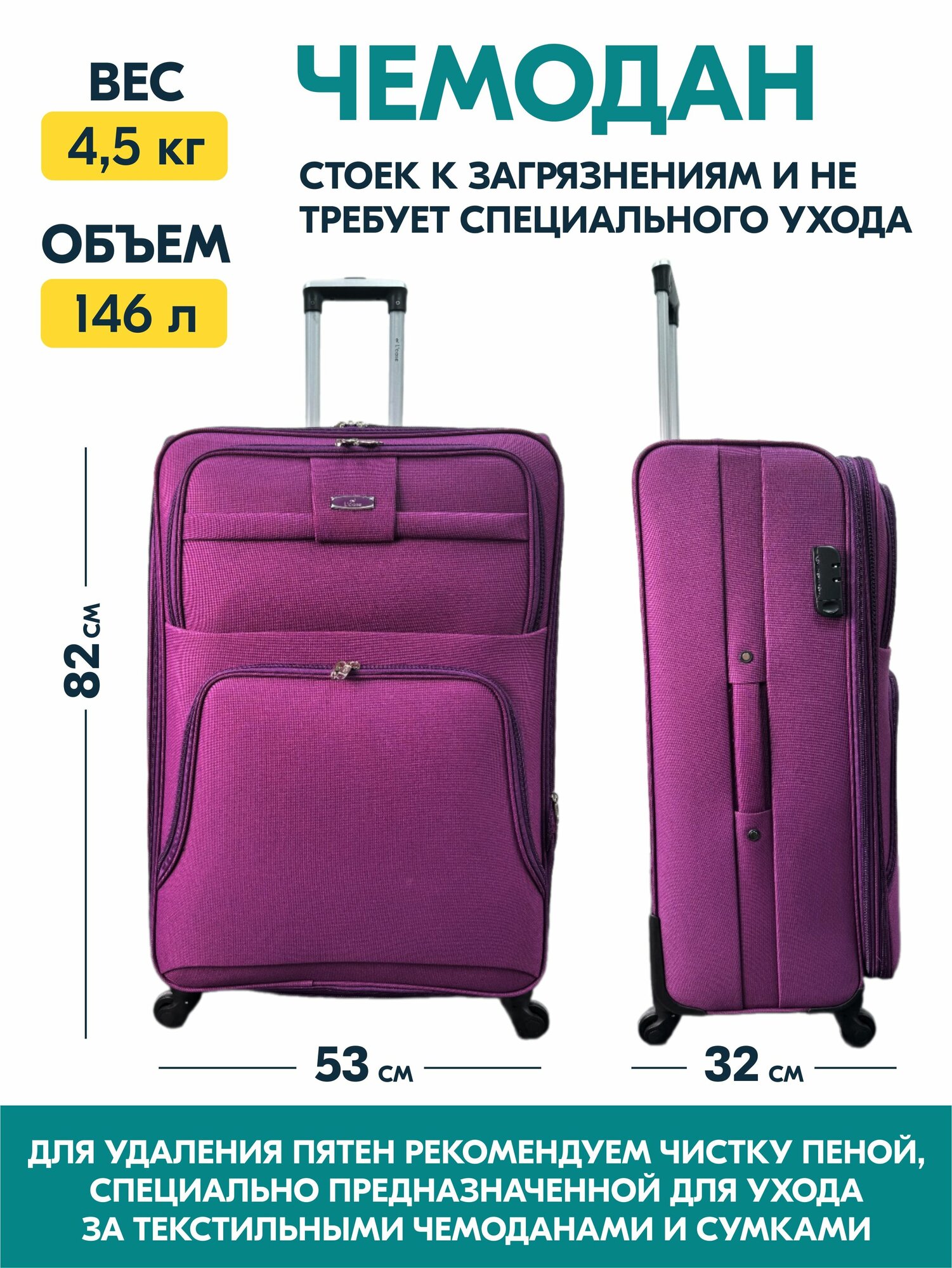 Чемодан на колесах L большой, фиолетовый - Чемодан тканевый, семейный Lcase