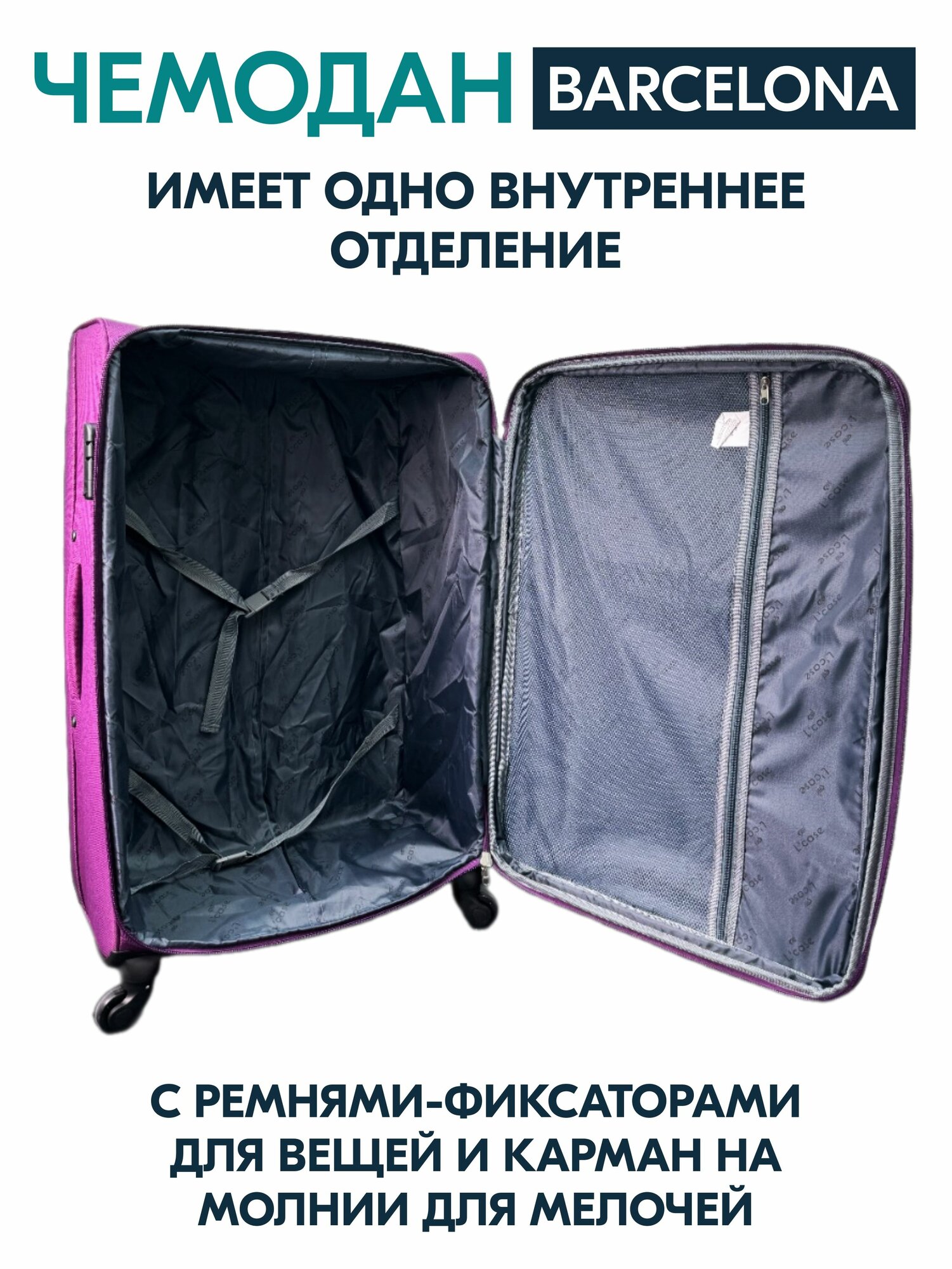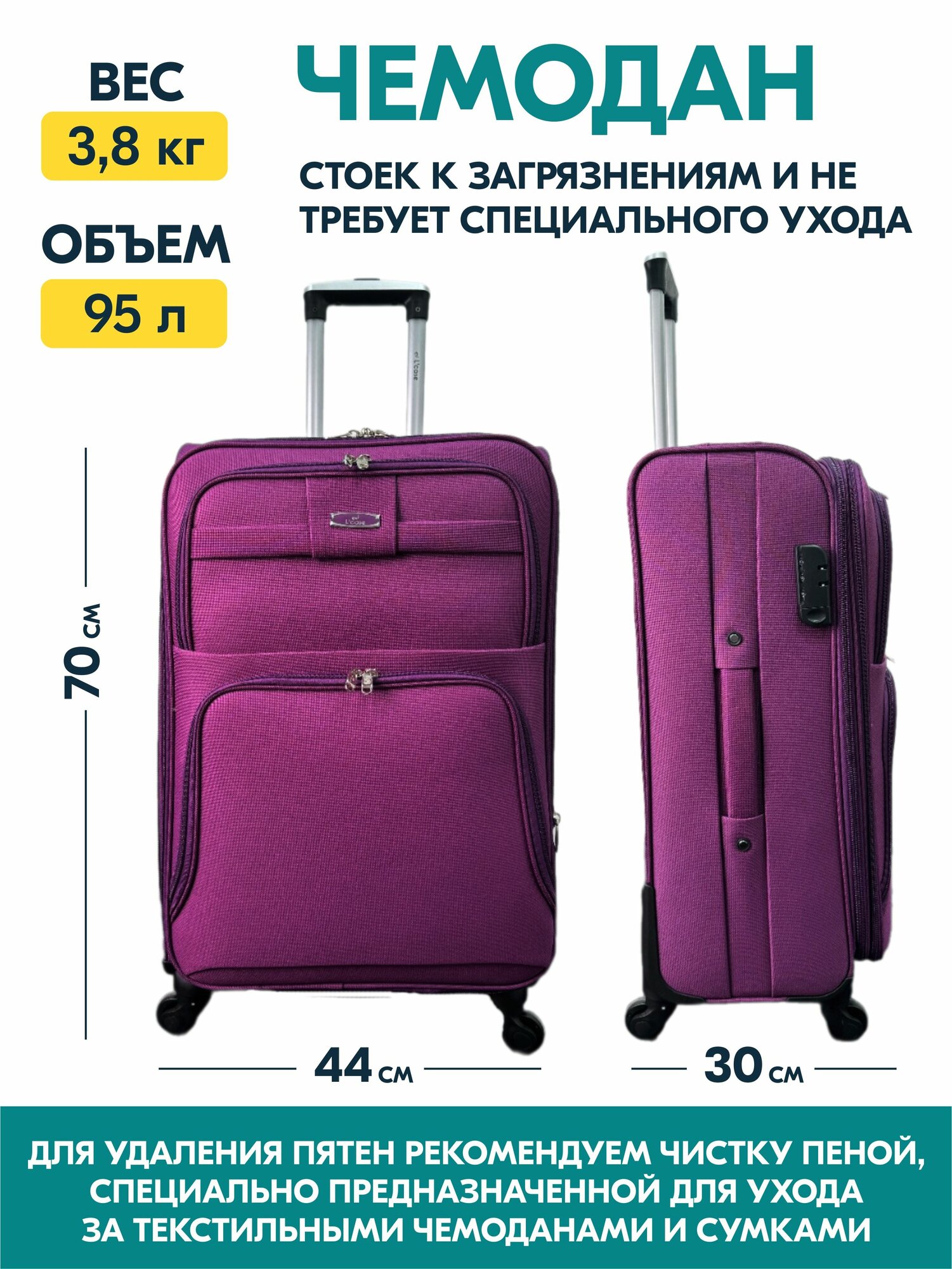Чемодан на колесах L большой, фиолетовый - Чемодан тканевый, семейный Lcase