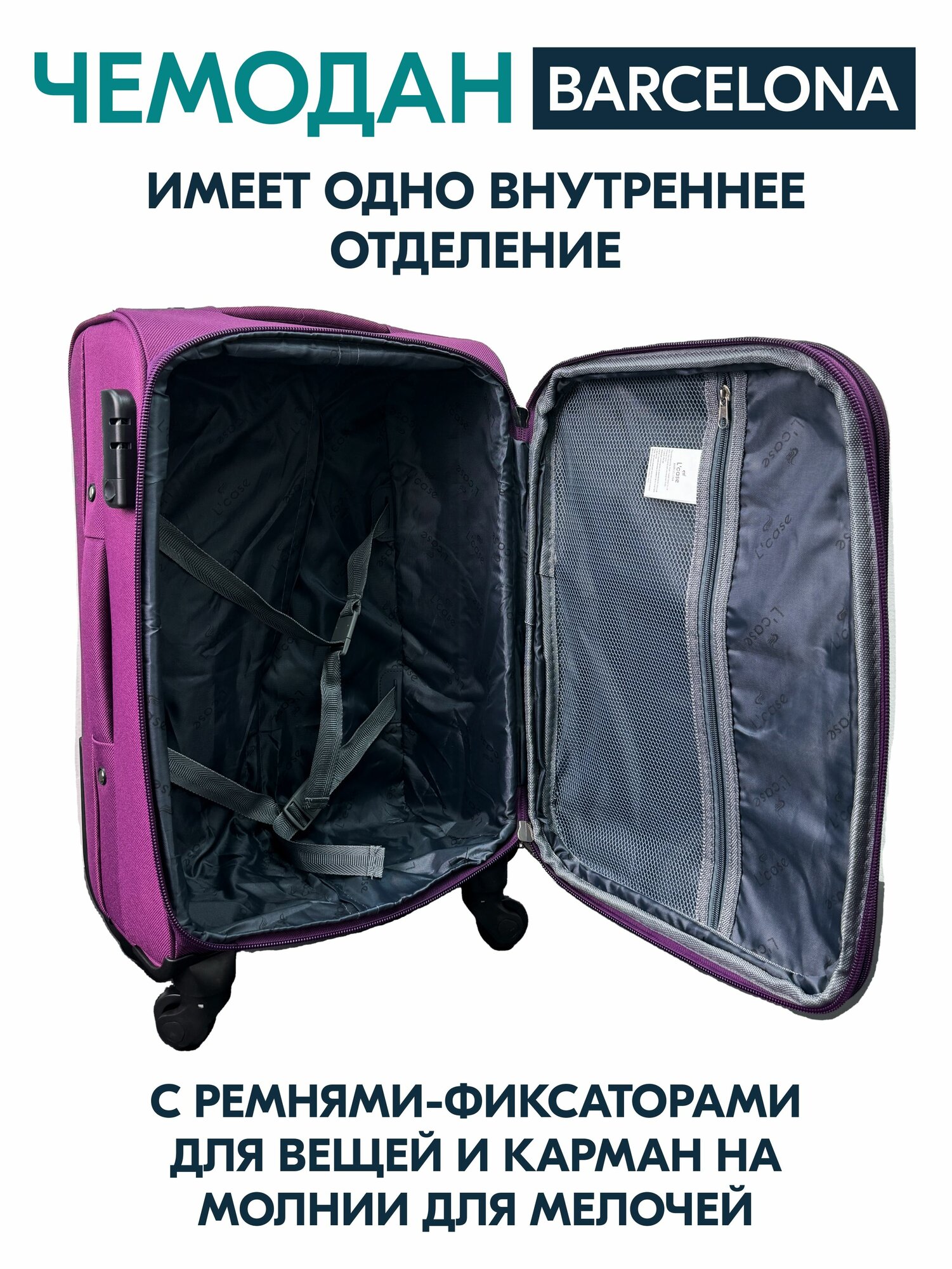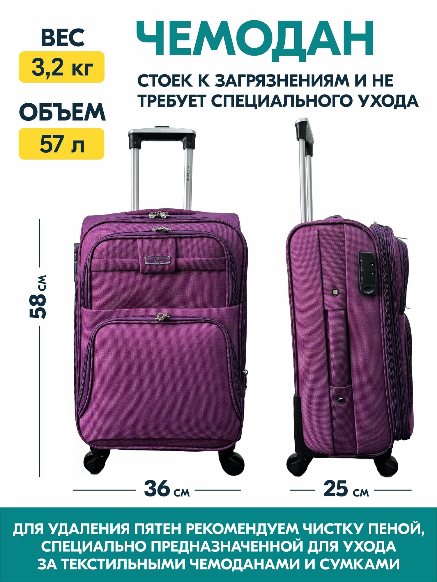 Чемодан на колесах M средний, фиолетовый - Чемодан тканевый, семейный Lcase