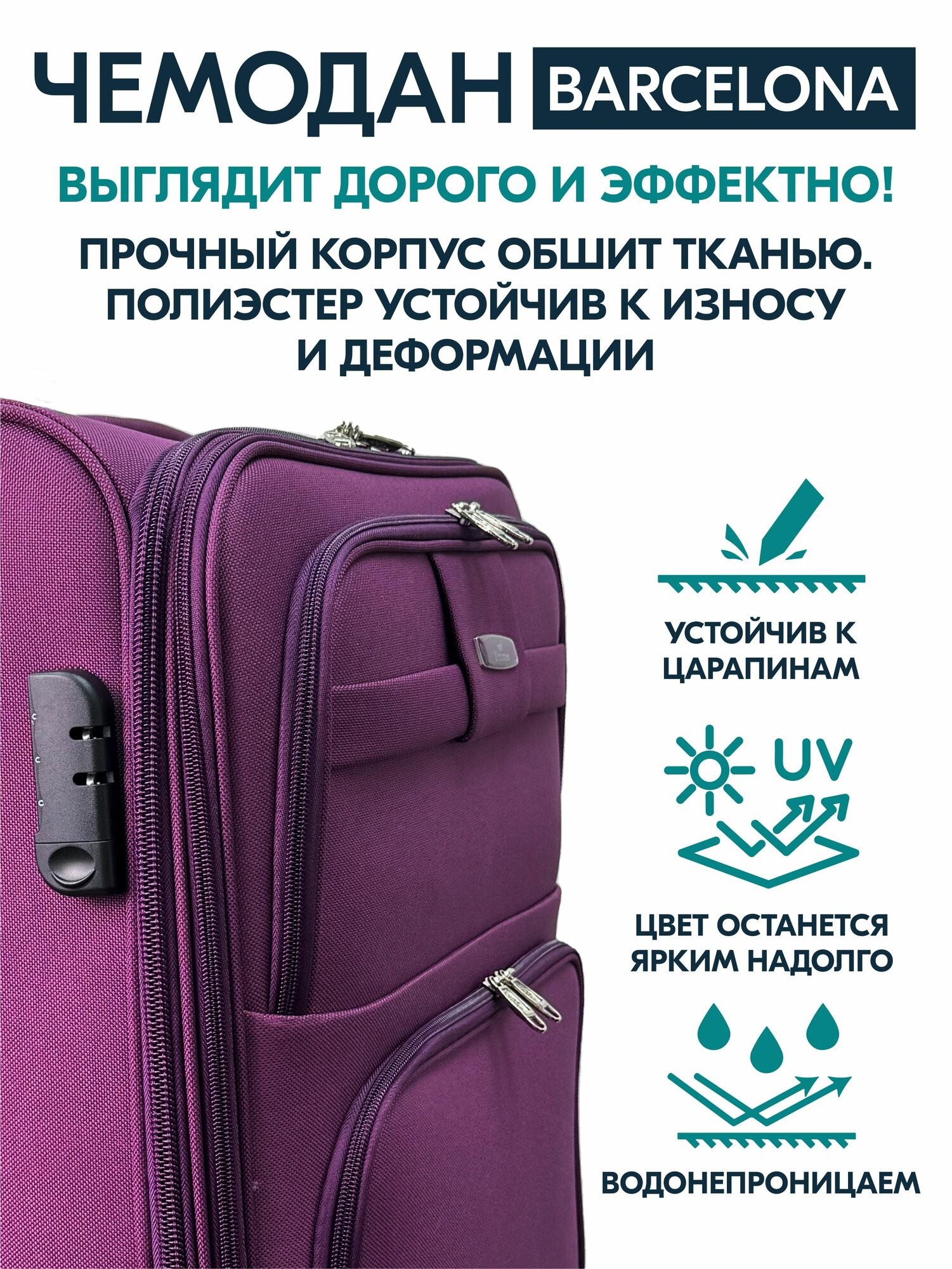 Чемодан на колесах L большой, фиолетовый - Чемодан тканевый, семейный Lcase