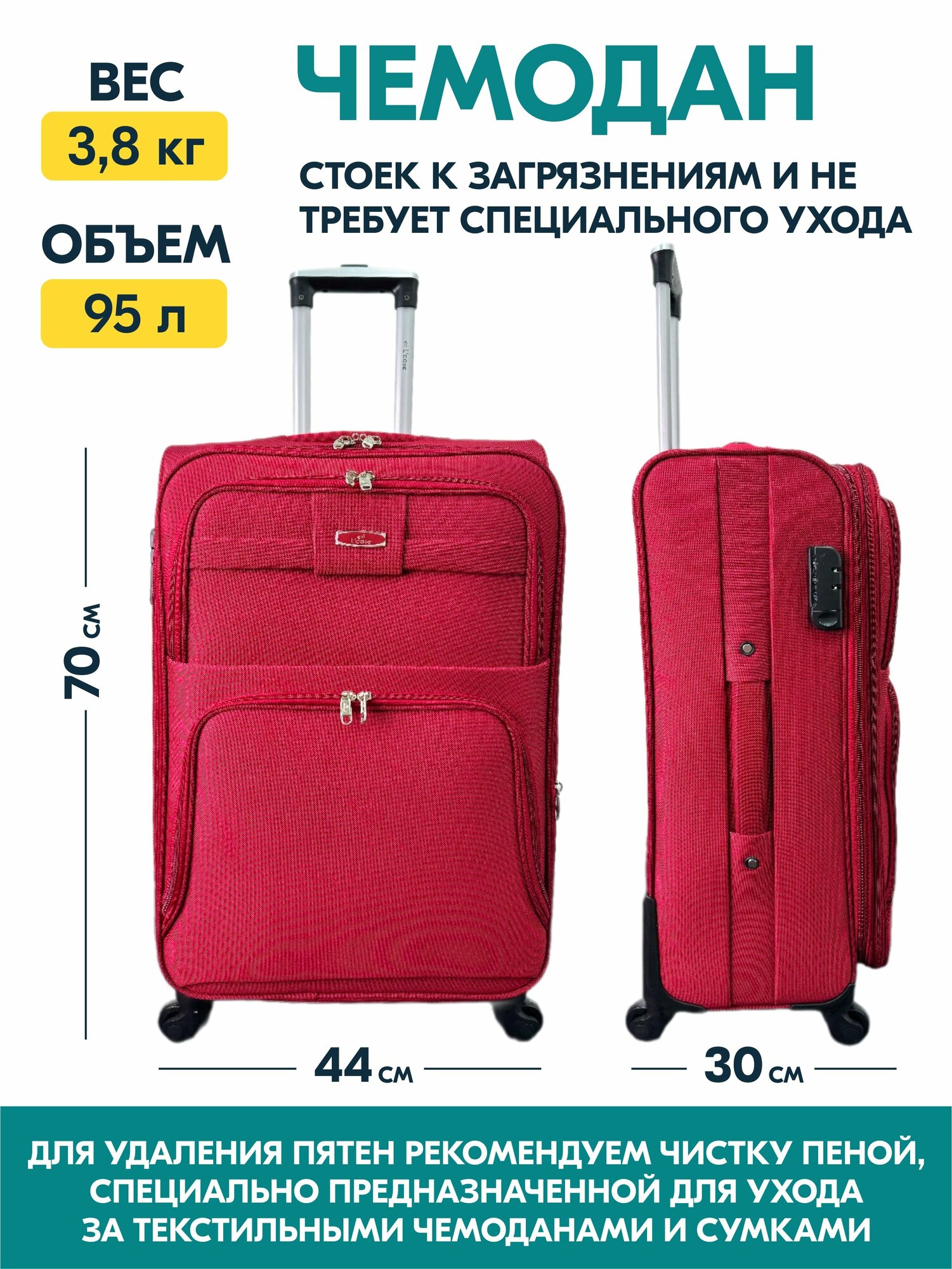 Чемодан на колесах Lcase BARCELONA, Бордовый, Большой размер L.Тканевый, 82 см, 129 л. Дорожный чемодан на колесиках для путешествий и поездок. 7 390 ₽