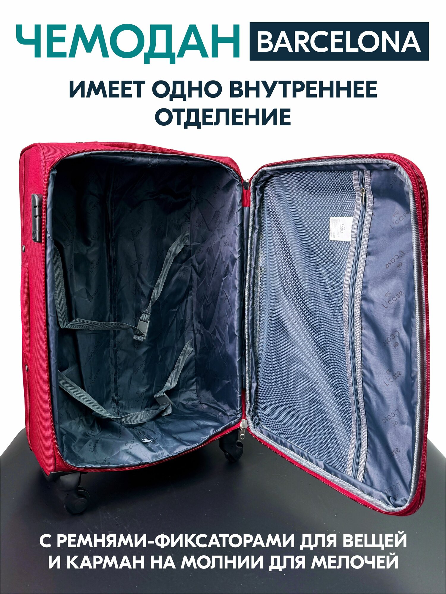 Чемодан L'case Barcelona, 92 л, размер M+, бордовый информация: