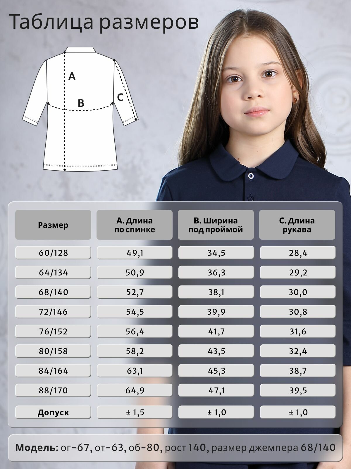 Школьная блуза LADNO Весна - лето 2025, размер 72, темно-синий информация: