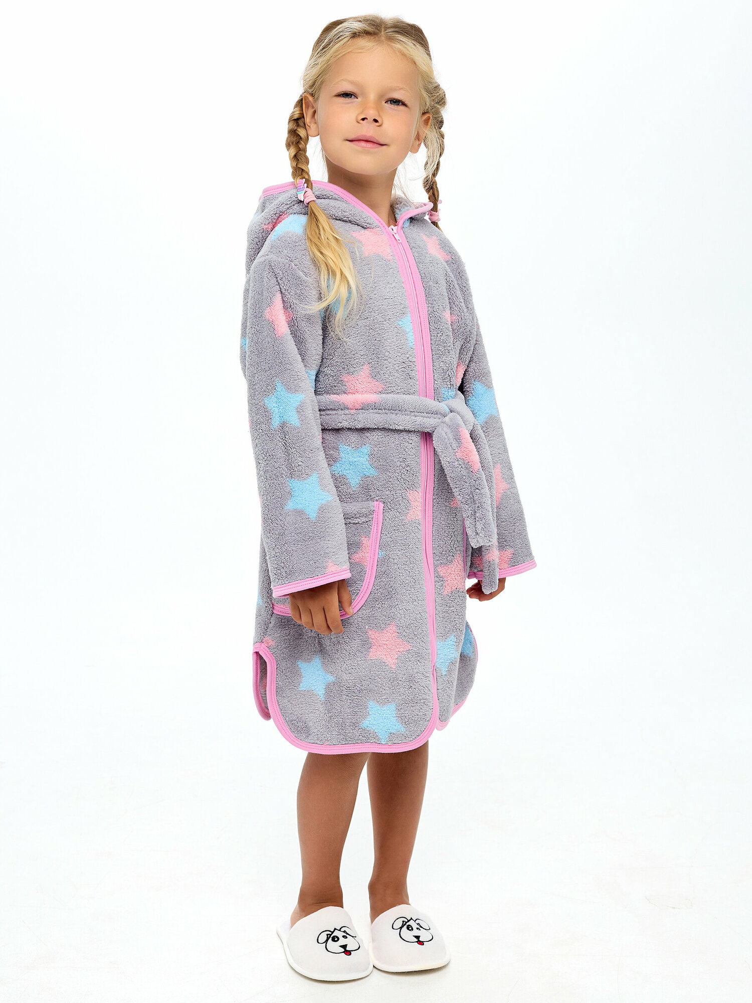 Теплый халат на молнии, розовые звезды, размер 122 1 511 ₽