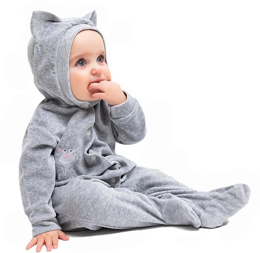 Комбинезон Nice cat, закрытая стопа, размер 56, серый
