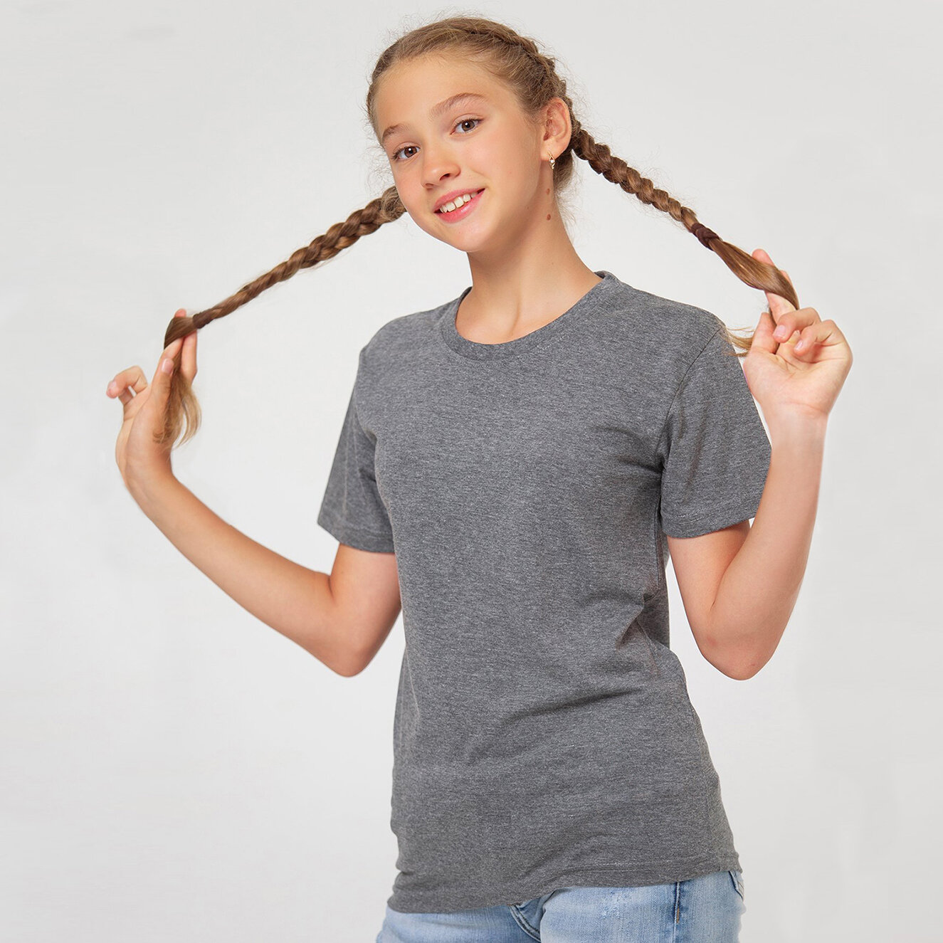 Детская базовая однотонная футболка, HappyFoxHF5501 серыймеланж 164