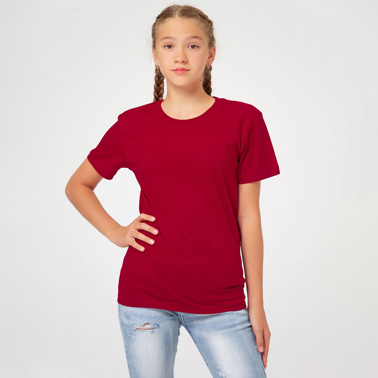 Детская базовая однотонная футболка, HappyFox HF5501 т.бордовый 146