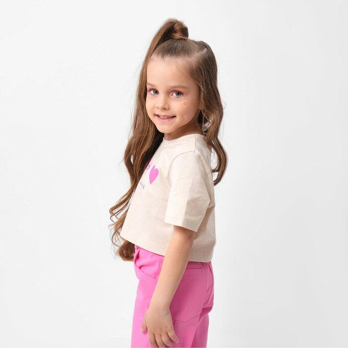 Футболка детская укороченная KAFTAN "Сердечки", р. 30 (98-104 см), бежевый