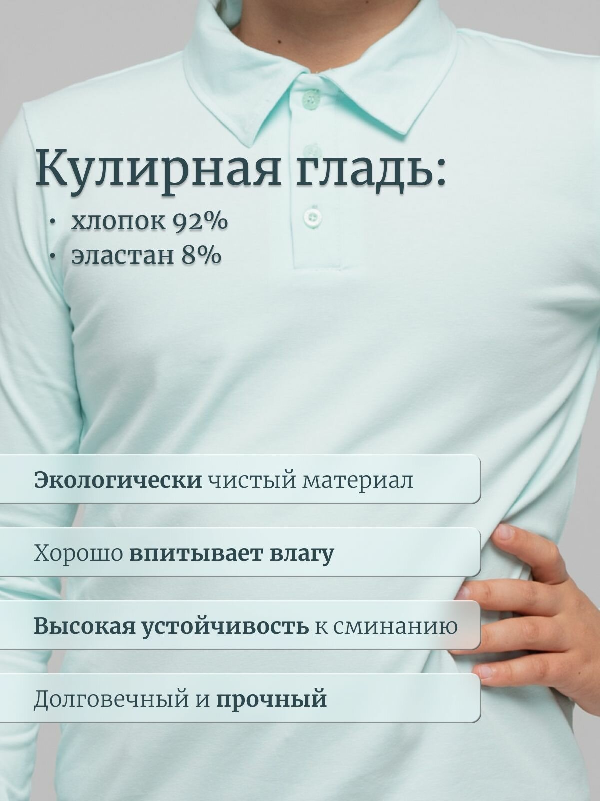 Футболка для мальчика LADNO Поло мятная с длинным рукавом 170 1 597 ₽