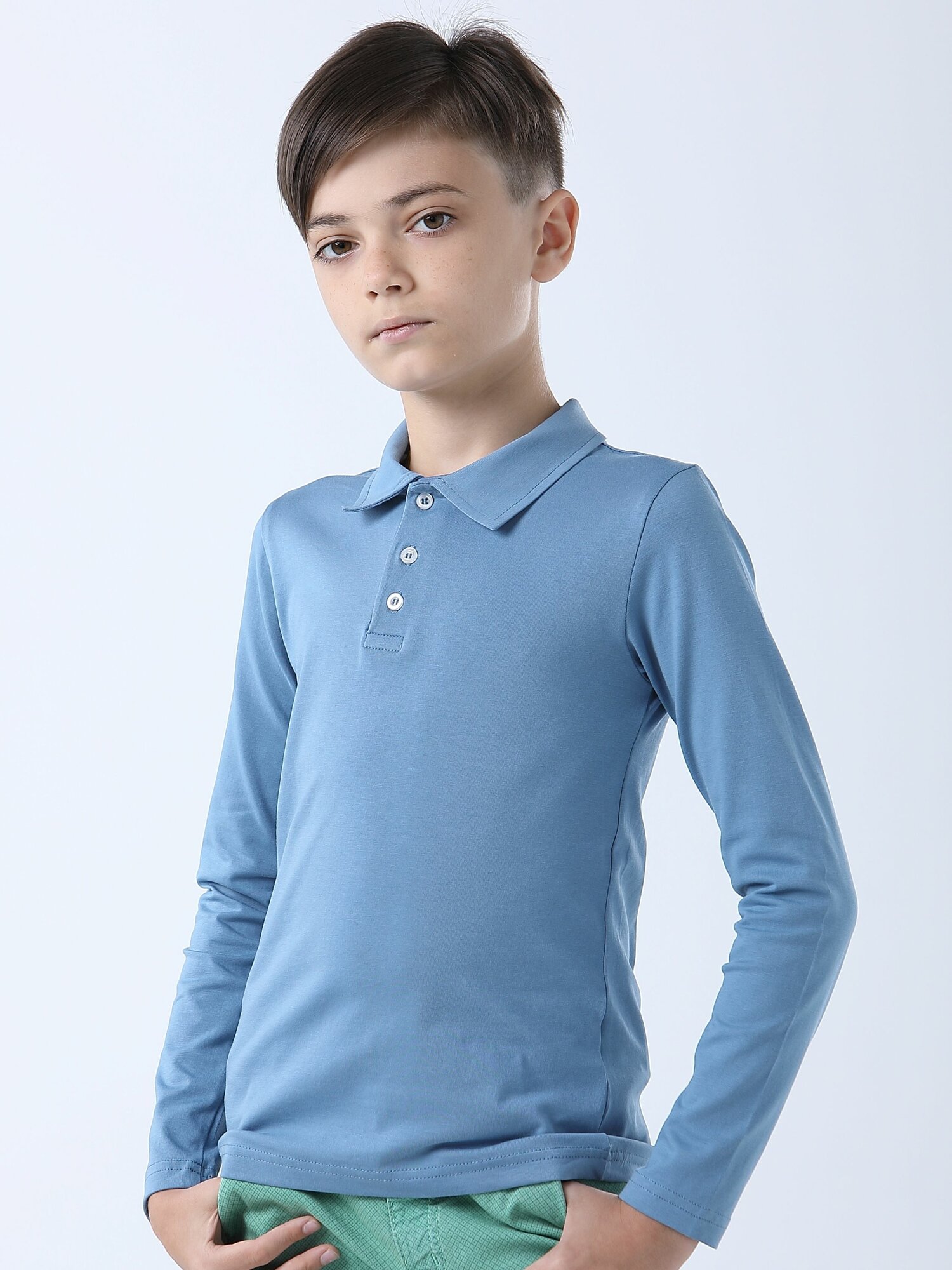 Футболка для мальчика LADNO Поло мятная с длинным рукавом 170 1 597 ₽