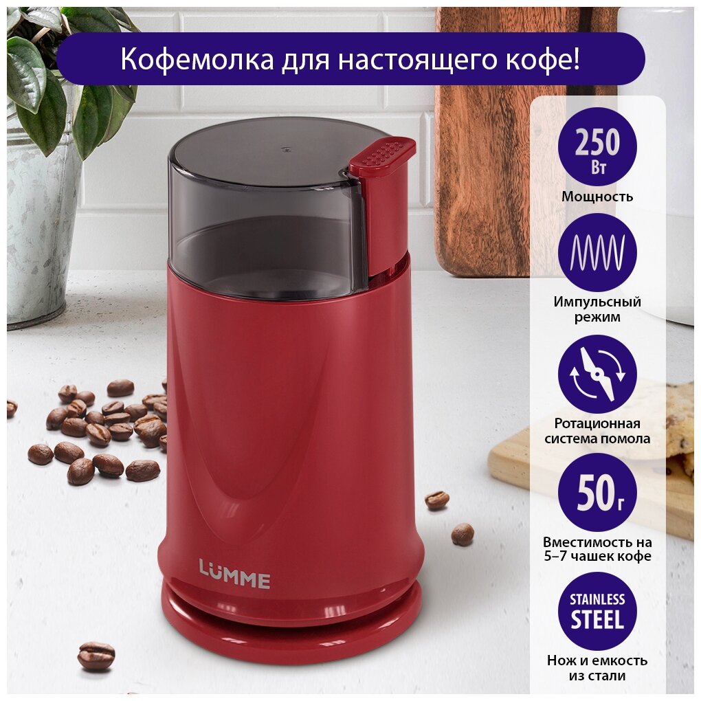 Кофемолка LUMME LU-2605 красный гранат информация: