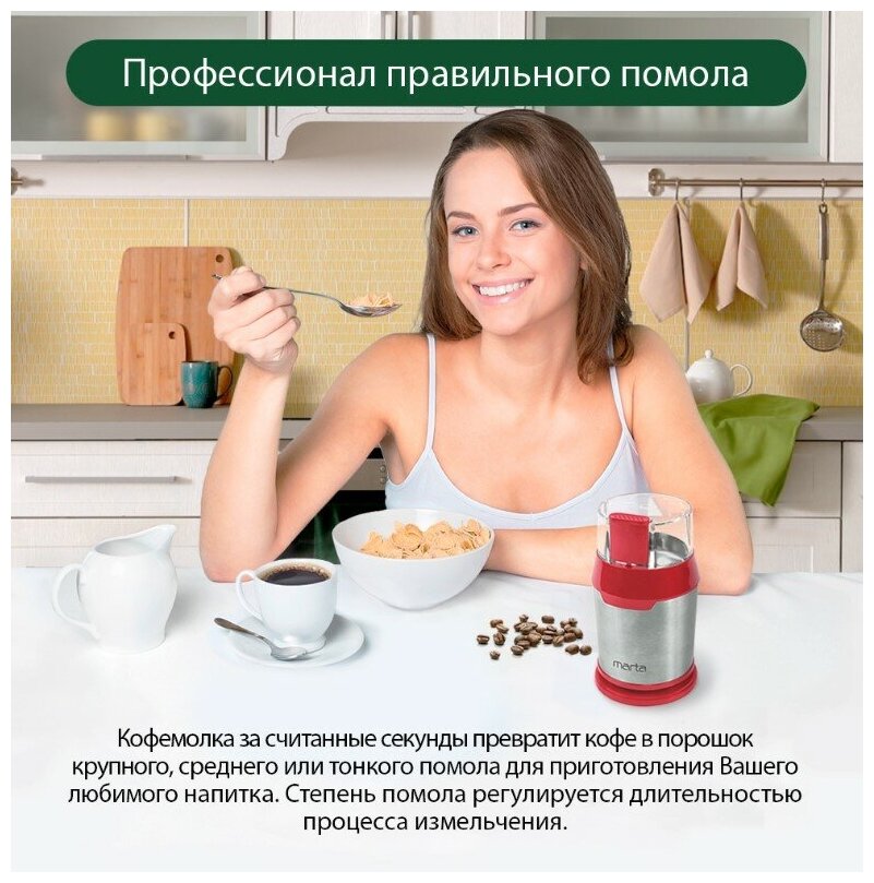 Кофемолка MARTA MT-2168, яркий коралл информация: