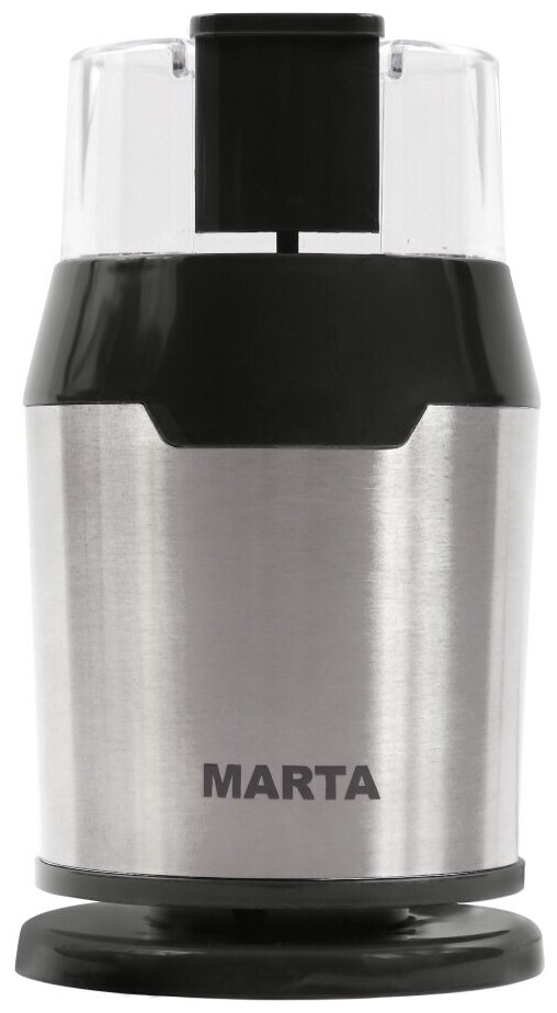Кофемолка электрическая Marta / Марта MT-2168 с ротационным ножом нержавеющая сталь, пластик черный жемчуг 10.1x10.1x18.2см мощность 250Вт / техника для кухни / мельница