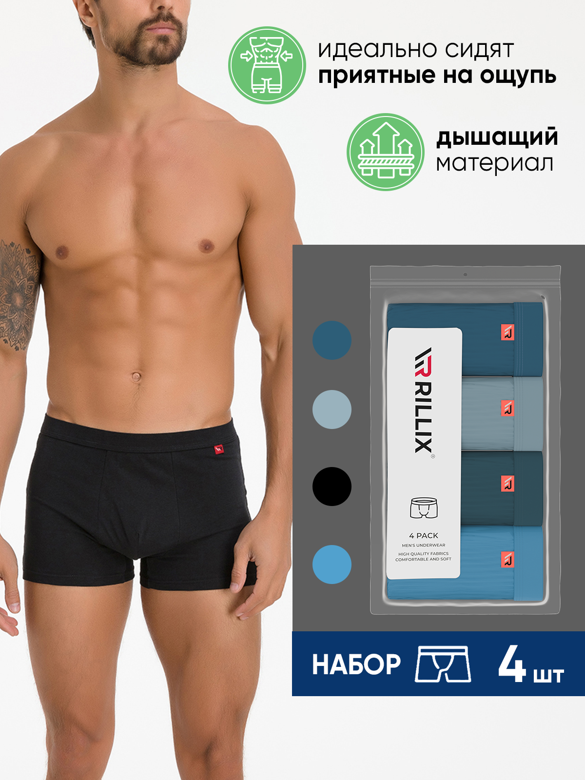 Трусы Rillix, комплект из 4 шт., размер XXL, серый, голубой, черный, синий 1 790 ₽