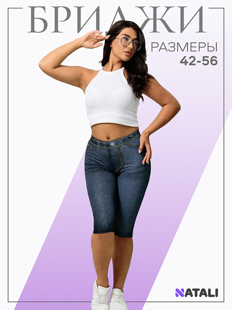 Бриджи женские, цвета джинс размер 52 918 ₽
