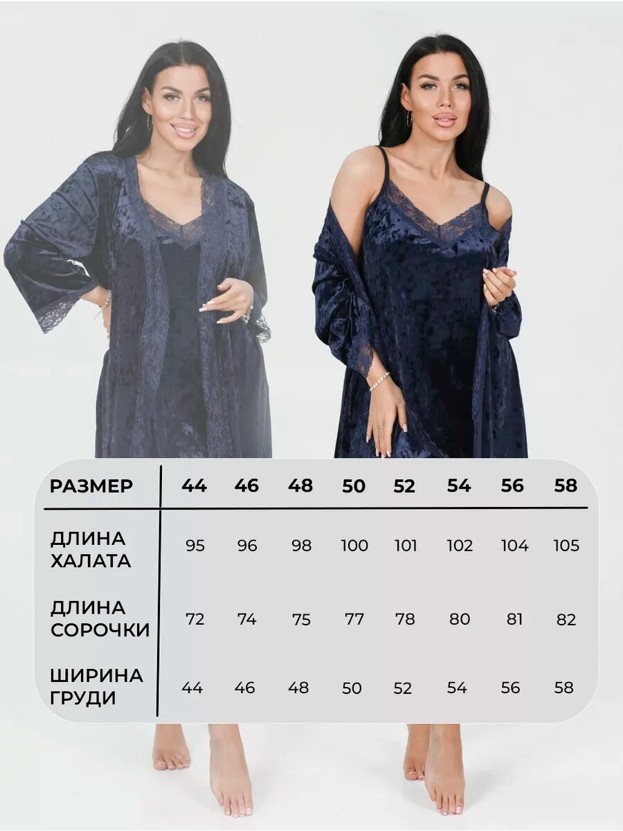 Lovetex.store / Пеньюар кружевной бархатный, халат + сорочка / синий / размер 58 2 441 ₽