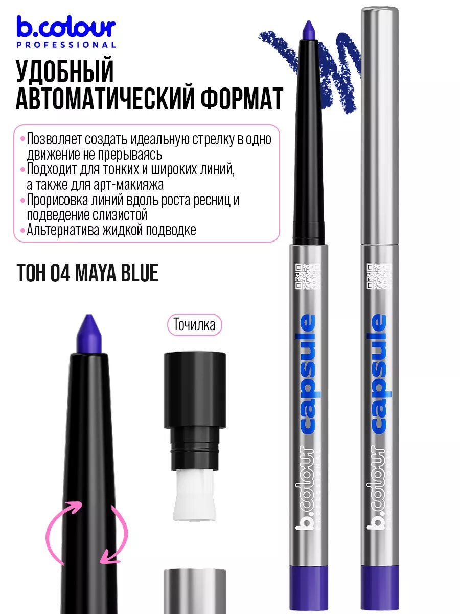 B.COLOUR PROFESSIONAL Карандаш для глаз каял гелевый, водостойкий CAPSULE, 04 MAYA BLUE информация: