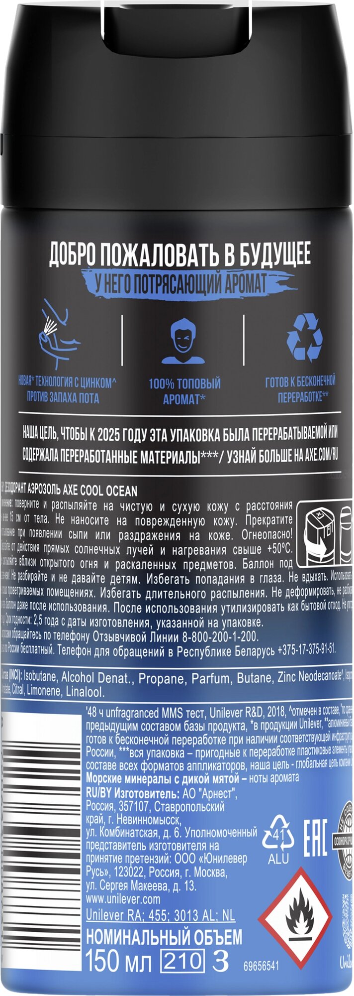 Отзывы на Дезодорант-спрей мужской AXE Cool ocean Морские минералы с дикой мятой, 150мл