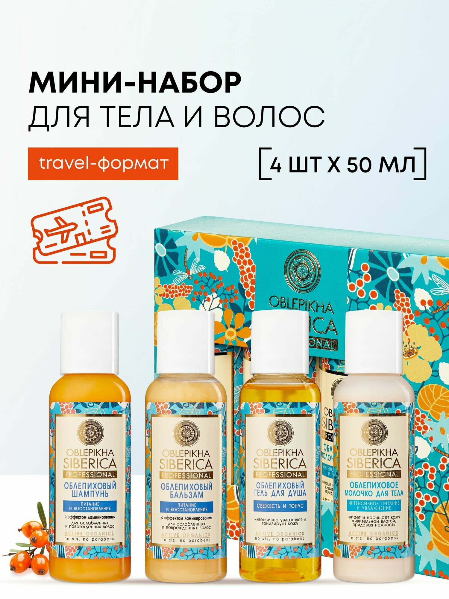 Natura Siberica Oblepikha Дорожный набор косметики для волос и тела: облепиховые мини шампунь и бальзам, гель для душа и увлажняющее молочко тревел формат 4х50 мл информация: