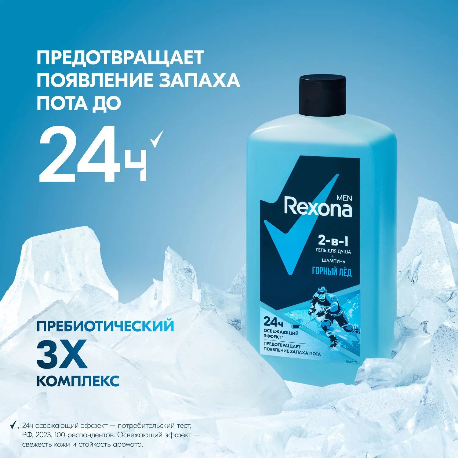 10 цен на Rexona Гель для душа и шампунь 2в1 Горный лед до 12 часов 750мл 4605922033592