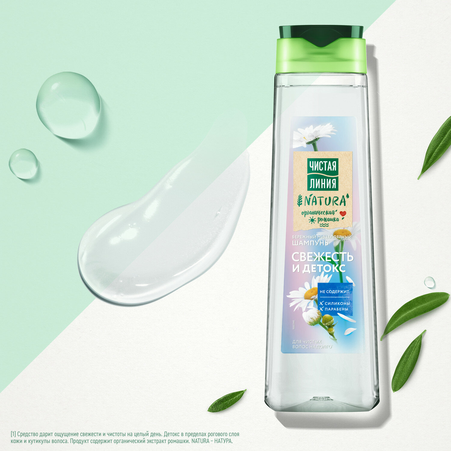 Чистая Линия NATURA мицеллярный шампунь бережный Свежесть и детокс Organic Ромашка, чистые волосы надолго 400 мл информация: