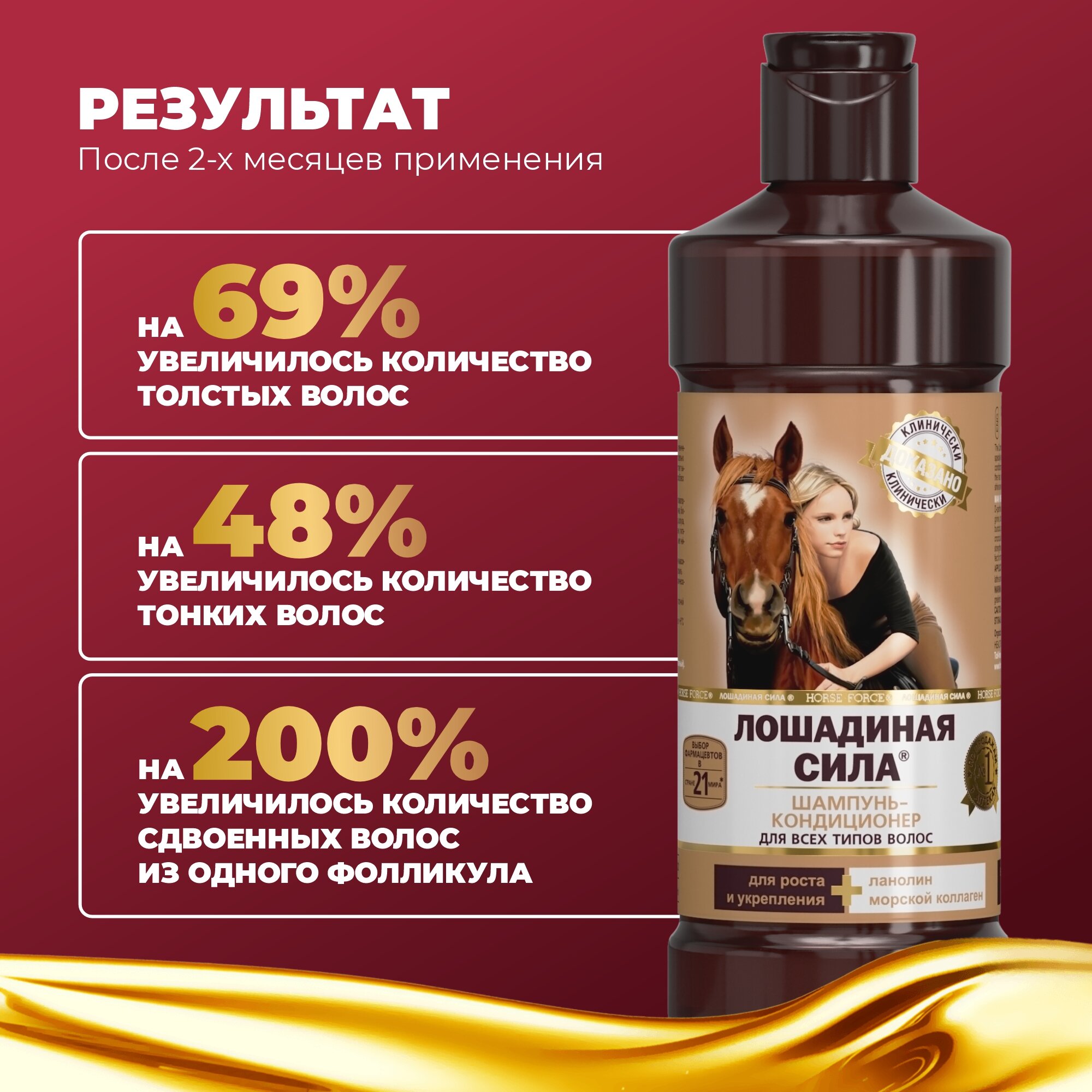 10 цен на Шампунь для волос женский с Коллагеном и Ланолином Лошадиная Сила профессиональный против выпадения для роста 500 мл