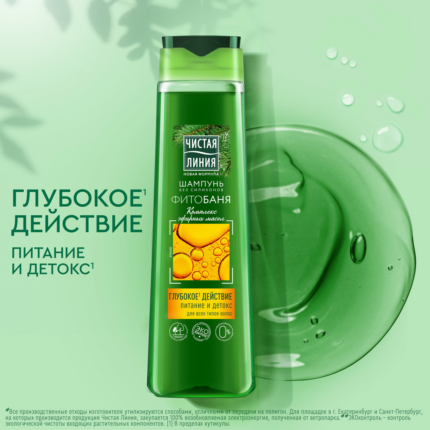 Чистая Линия шампунь фитобаня питание и детокс для всех типов волос комплекс эфирных масел 400 мл информация: