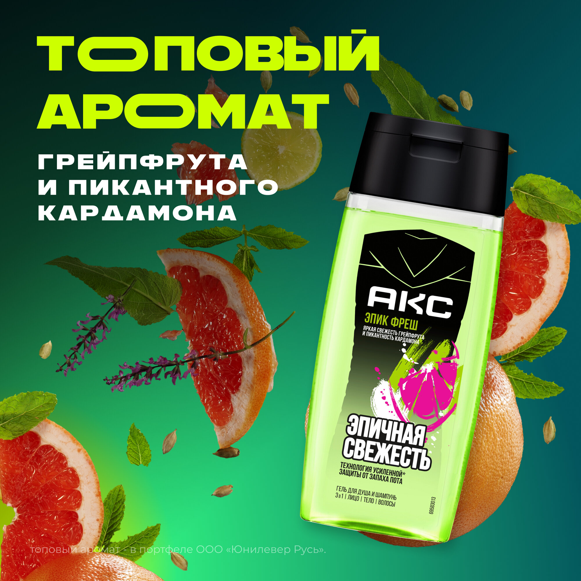 10 цен на Гель для душа для умывания лица шампунь мужской 3в1 Акс Эпик Фреш 100 мл