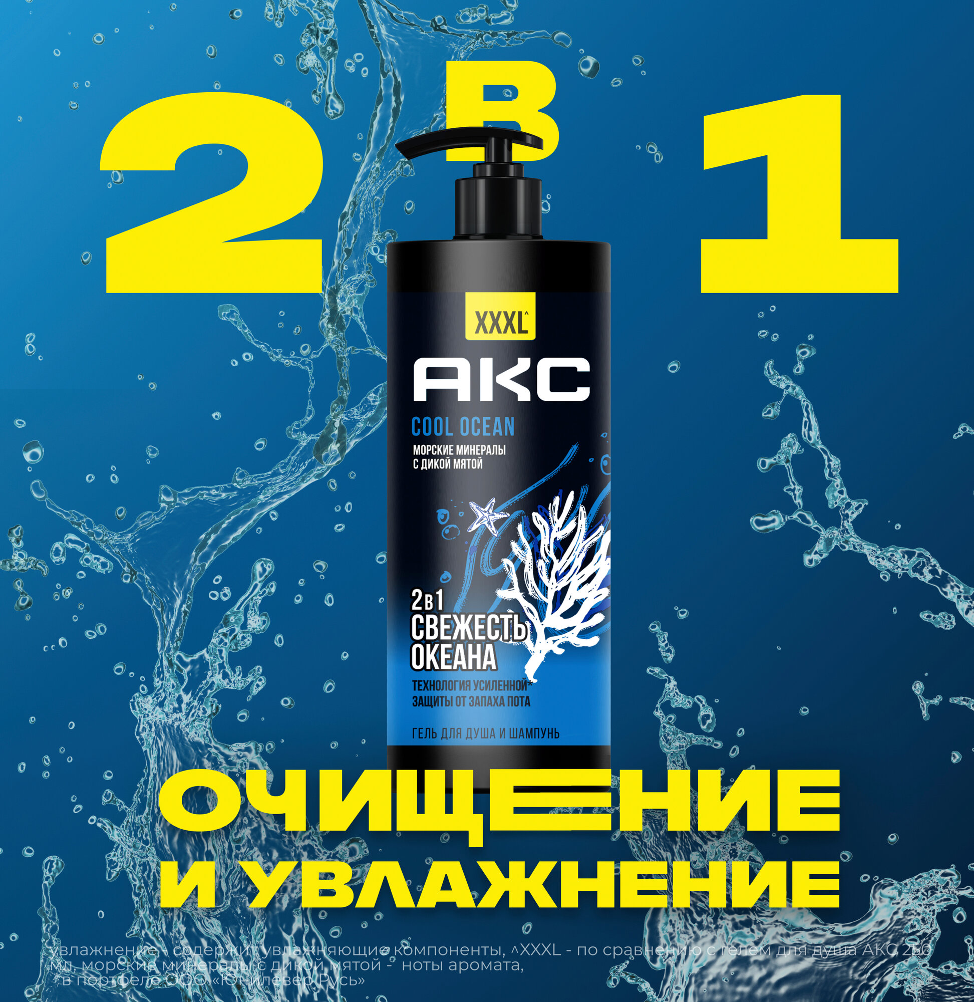 Гель для душа и шампунь для волос мужской парфюмированный 2в1 Акс Cool Ocean с пребиотиками, 1 л, информация: