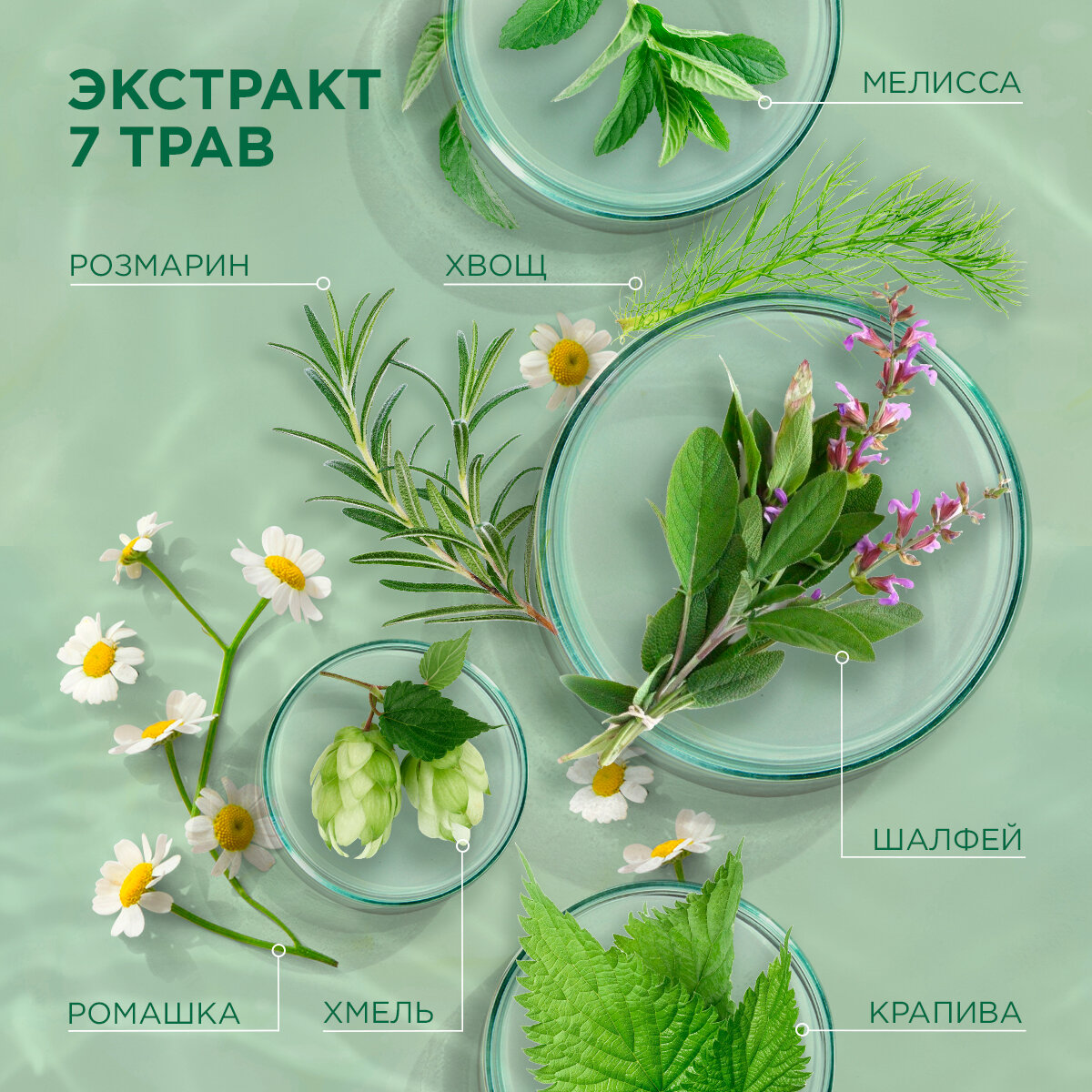 | Дополнительная информация | содержит: экстракт крапивы, экстракт мелиссы, экстракт розмарина, экстракт ромашки, экстракт хвоща, экстракт хмеля, экстракт шалфея |