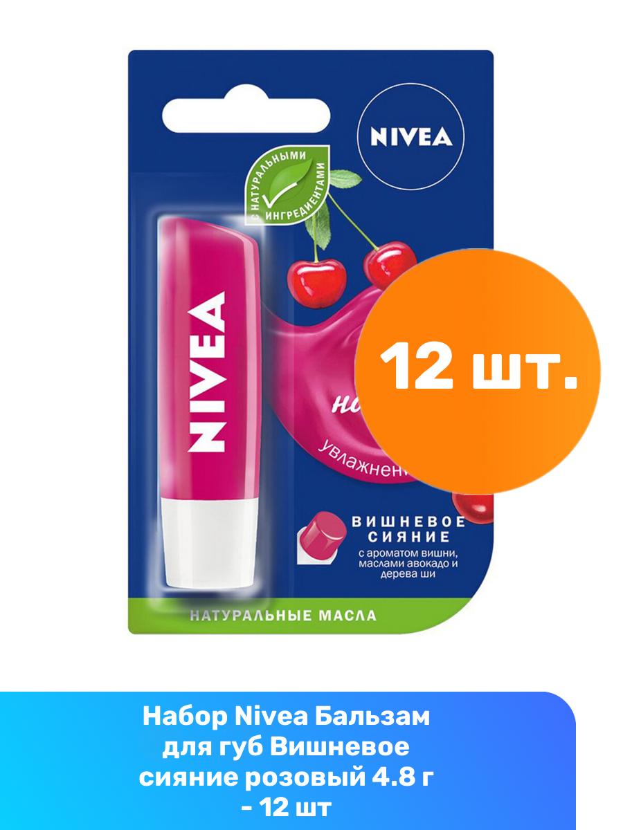 Nivea Бальзам для губ Вишневое сияние, 4,8 г, 12 шт информация: