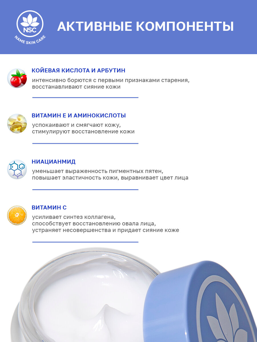 Выравнивающий крем для лица Name Skin Care с койевой кислотой и арбутином, 50 мл информация: