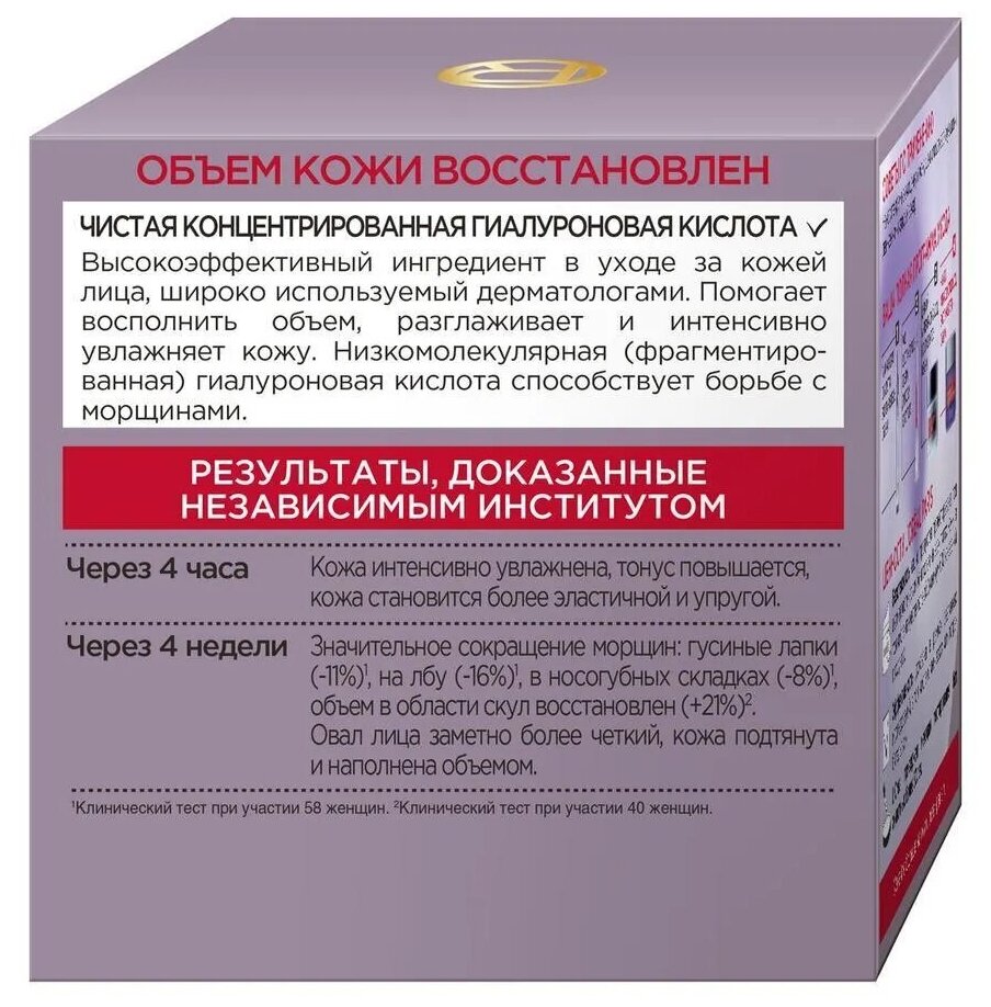 | Активный ингредиент | витамин A (ретинол) / гиалуроновая кислота / глицерин / эластин |