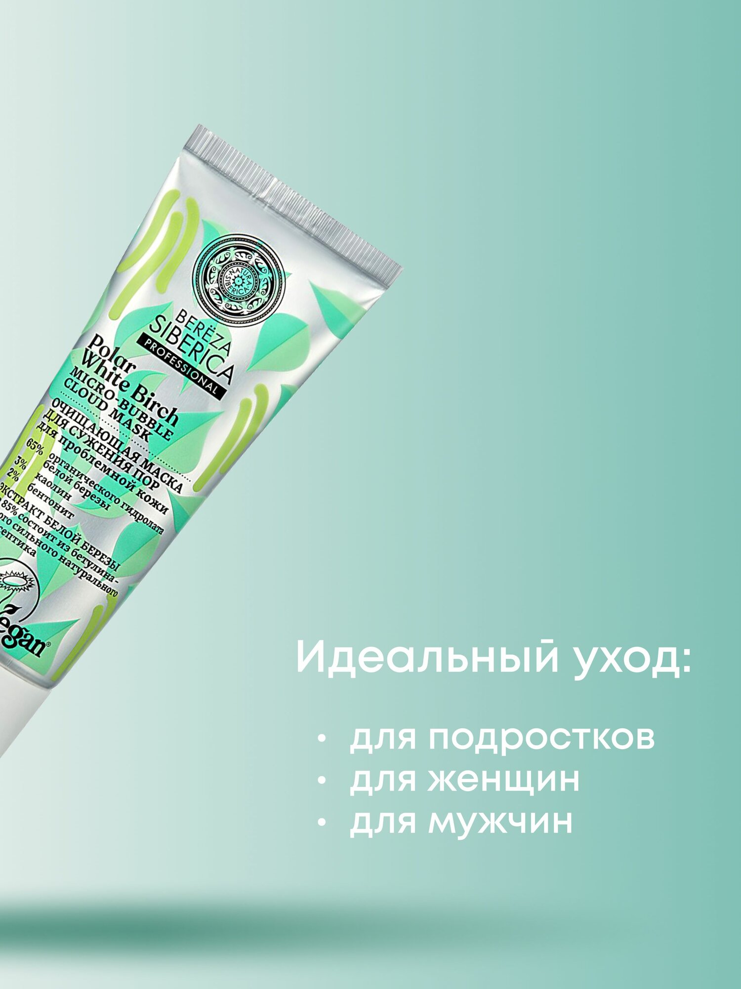 10 цен на Natura Siberica Bereza Очищающая пузырьковая глиняная маска для сужения пор для проблемной кожи лица от черных точек и прыщей 75 мл